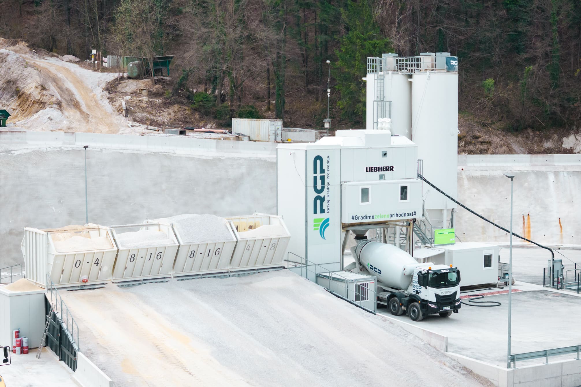 Podjetje RGP d.o.o., je svojo tehnološko opremljenost nadgradilo z mobilno betonarno Liebherr Mobilmix 2.5-F — sodobno rešitvijo, ki omogoča proizvodnjo visokokakovostnega betona. Postavljena je na lokaciji kamnoloma, kar omogoča trajne deponije agregata in zagotavlja nemoten potek transporta brez zamud, zastojev ali drugih logističnih omejitev. S tem kot podjetje utrjujemo svojo zavezanost k učinkovitosti, prilagodljivosti in vrhunski izvedbi projektov.